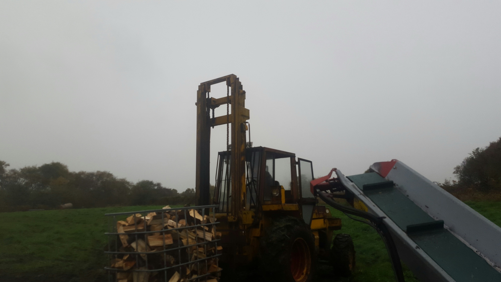 The bulk of the timber processing is carried out by 2 huge Scandinavian processors, we also operate a kindling machine and a 30 ton log splitter, for transporting wood around our estates we use a 12 ton custom built timber trailer fitted with a crane and timber grapple, uprated axles so it can cope in the dry conditions when the terrain is stiff and also extra wide flotation tyres so we do not get stuck in the wet.
